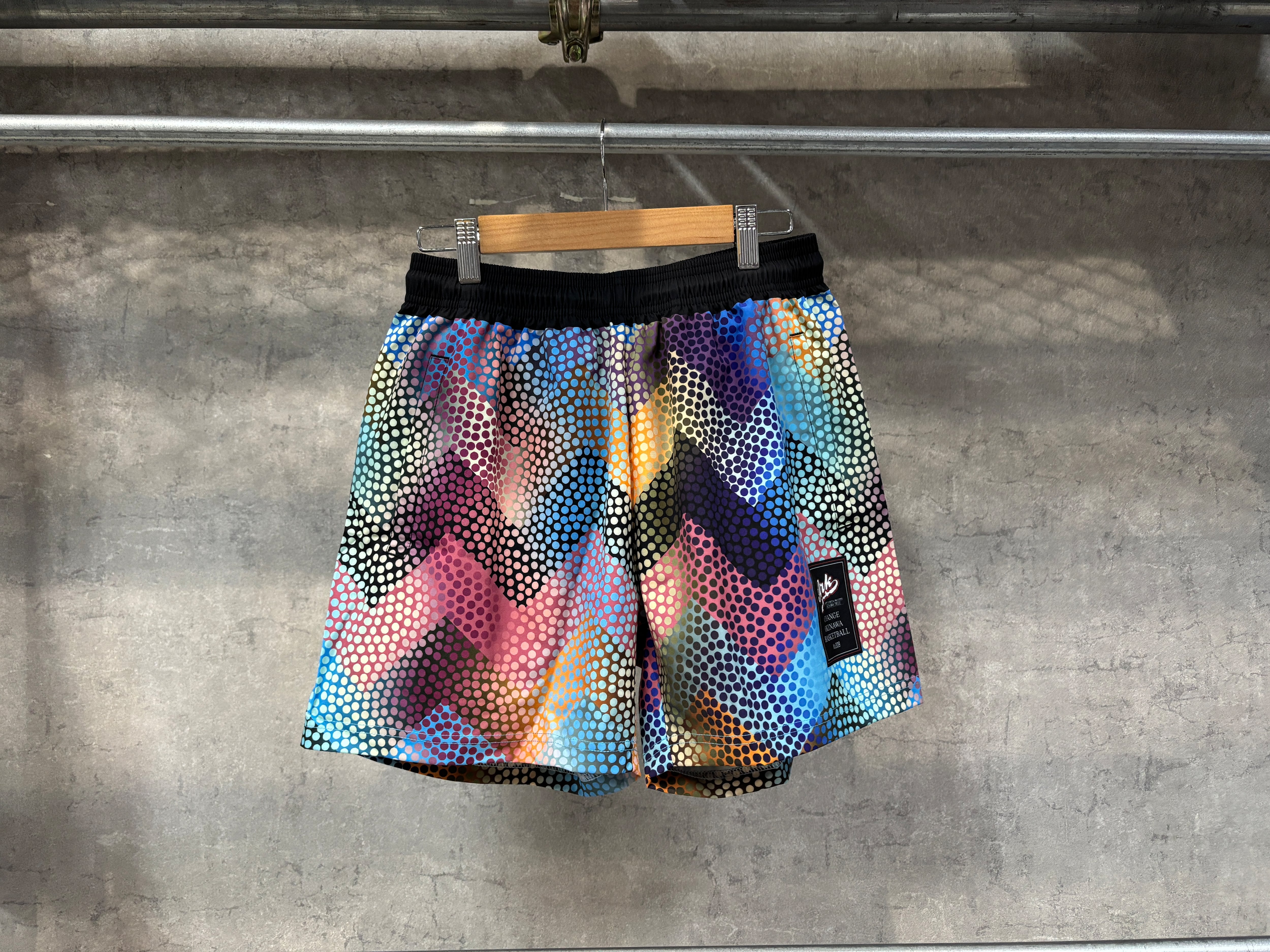 ギザギザ、ドット、グラデーションと様々な模様が重なり合った個性あるバスパン。