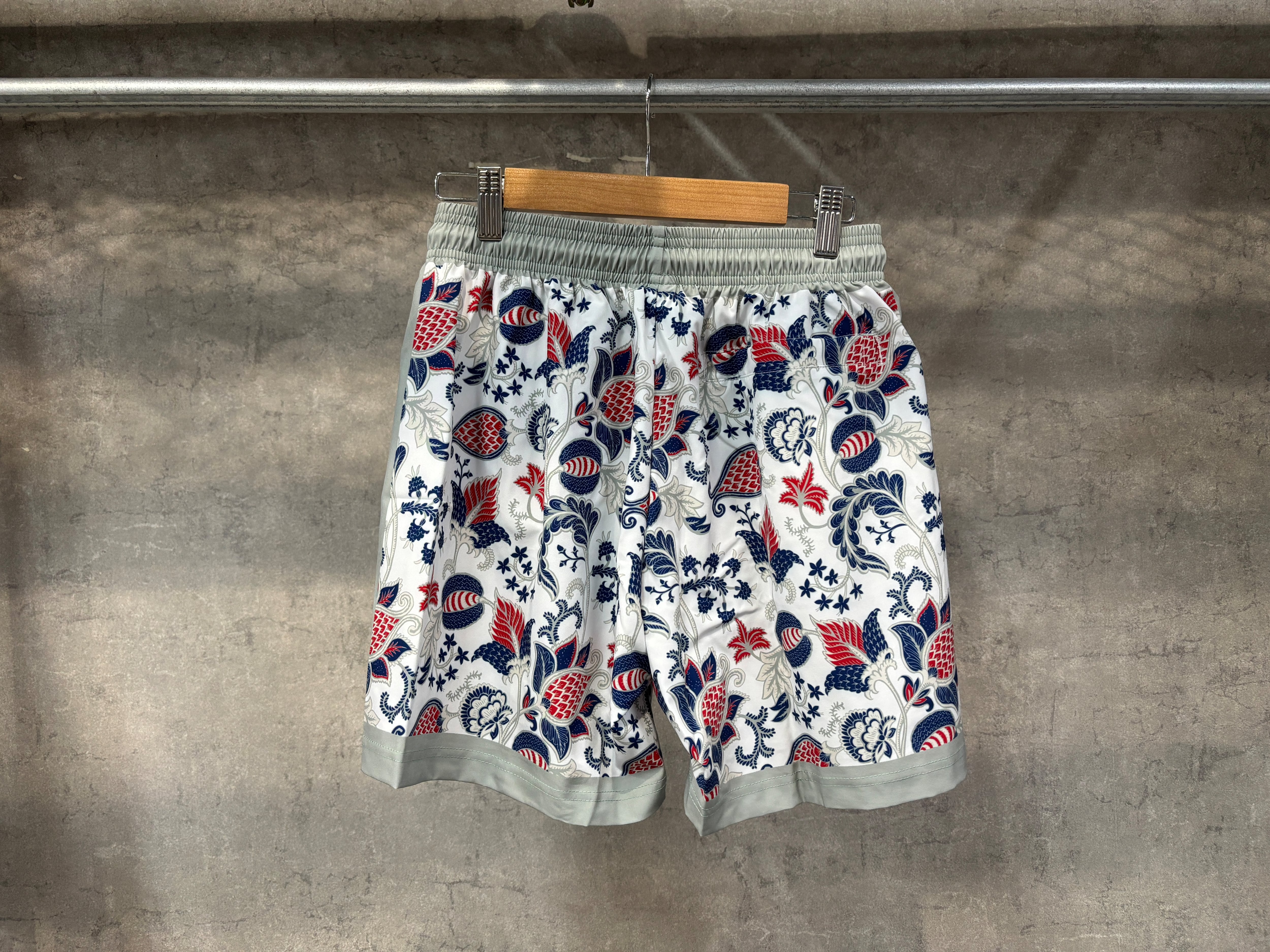 ホワイトに映えたネイビーとレッドのペイズリーバスパン!!