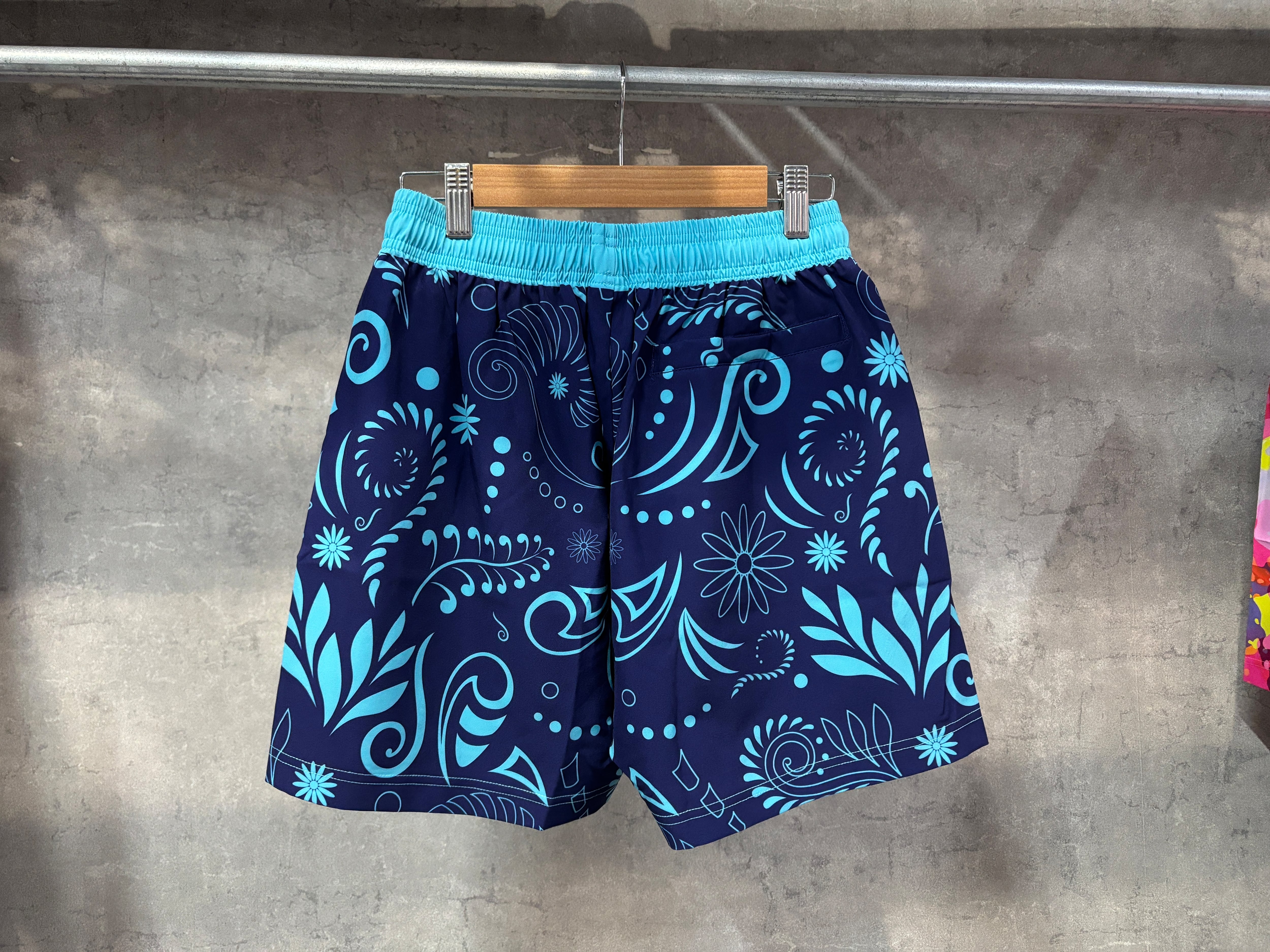 ネイビーに映えたターコイズカラーが可愛いボタニカル柄バスパン!!